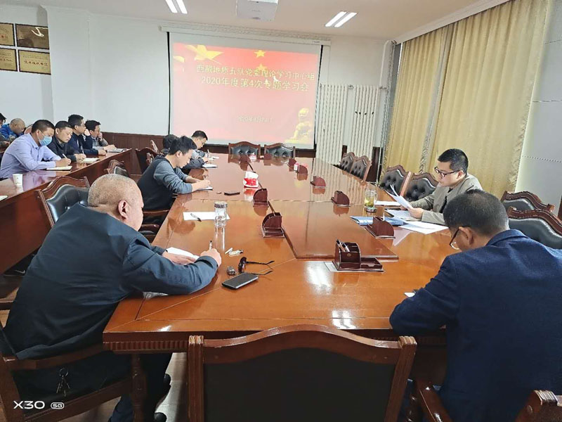 2020年4月23日下午,地质五队党委理论中心组召开第4次集中学习会。队党委委员、纪委书记张彦军主持,各支部支委、各单位负责人等18人参加学习。