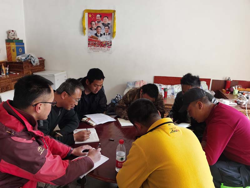 野外一线地质调查和驻村工作开展在哪里,就把党组织建到哪里,让党旗始终在一线高高飘扬。近期,区调队昌都妥坝区调项目、驻村工作队两个临时党小组分别召开集中学习会,传达学习习近平总书记给郑州圆方集团职工回信精神,认真领会习近平总书记在打好精准脱贫攻坚战座谈会上的重要讲话精神。两个党小组共13名党员参与学习。