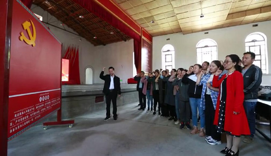 重温入党誓词,面对鲜红的党旗,全体党员高举右手,在杨安文同志领誓下,再次庄严宣誓。“我志愿加入中国共产党……随时准备为党和人民牺牲一切,永不叛党。”铿锵恢宏的誓词,震撼着在场的每一位党员,一字一句,神圣而豪迈。