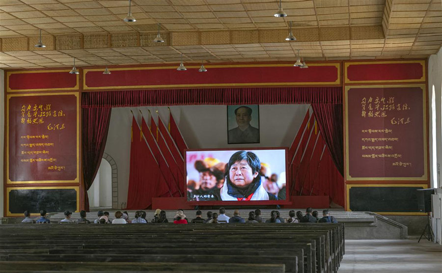 宣誓结束后,大家一起观影,此刻,优秀共产党员的形象在心中无比高大。
