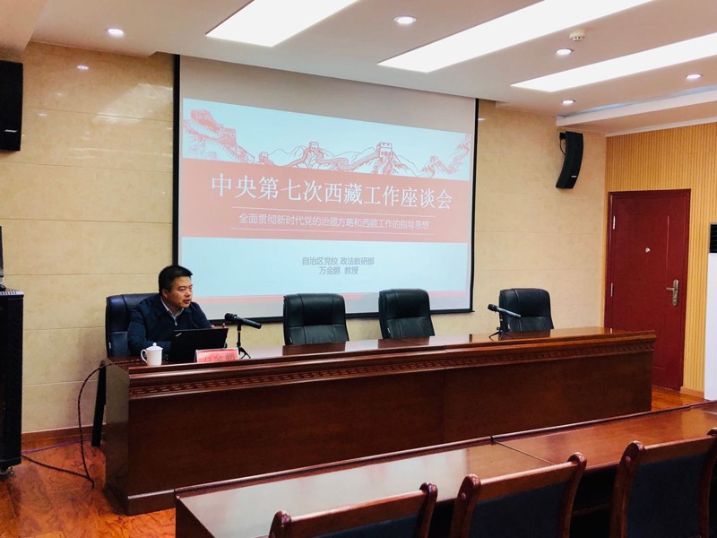讲座中,万金鹏教授以平实生动的语言,紧扣主题,从新时代党的治藏方略和西藏工作指导思想的形成与发展、新时代党的治藏方略和西藏工作指导思想的深刻内涵、全面贯彻新时代党的治藏方略和西藏工作的指导思想三个方面对中央第七次西藏工作座谈会精神进行了详细解读。