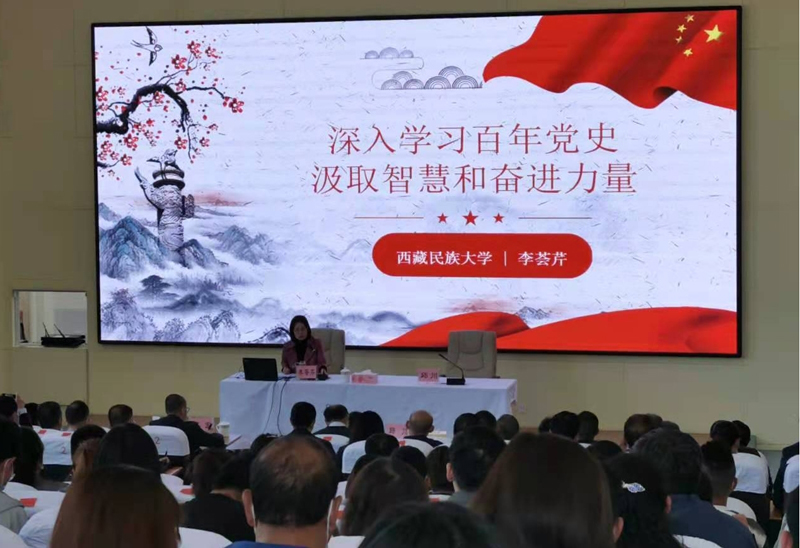 为深入学习贯彻习近平新时代中国特色社会主义思想,尤其是习近平总书记在党史学习教育动员大会上的讲话精神。5月12日下午,西藏自治区人民政府驻格尔木办事处(藏青工业园区管委会)邀请自治区宣讲团成员西藏民族大学马克思主义学院教授李荟芹作题为“深入学习百年党史 汲取智慧和奋进力量”的党史学习教育宣讲活动,格办(管委会)党组书记、副主任邱川主持宣讲会,我队党委委员、纪委书记张彦军及党务干部17人参加讲座。