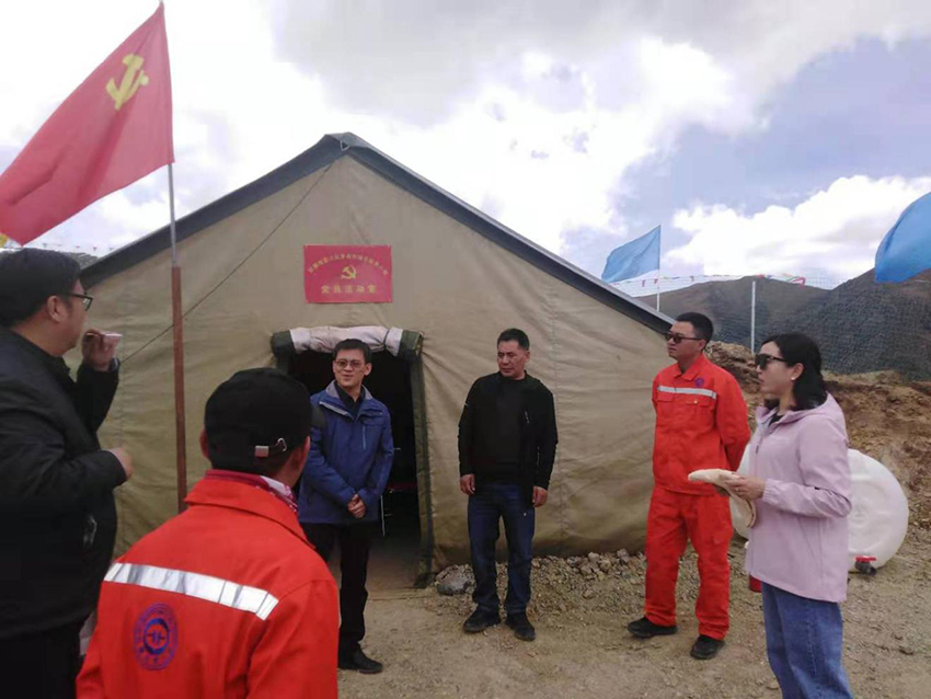 5月21日,局机关党委专职副书记李莉伟、政工人事处副处长李村一行与地质六队党委书记、副队长戴平、纪委书记三郎罗尔伍及党办、工会有关人员一同前往地质六队山南曲松县罗布莎项目部检查督导“帐篷支部”创建工作。
