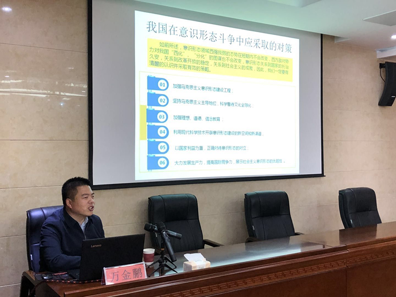 讲座中,万金鹏教授以平实生动的语言,紧扣主题,分别从“东西方意识形态斗争的由来及演变、我国当前面临的意识形态渗透挑战、加强意识形态工作的重要性与紧迫性、多方面努力加强意识形态工作”等四方面作了深入浅出的讲解,同时结合“三更”专题教育内容,对我们在新形势下处在边疆少数民族地区,如何加强和推进意识形态工作、巩固拓展“三更”专题教育成果有着理论性、教育性、启发性和指导性的帮助。万金鹏教授通过讲述一个个生动的故事、一组组翔实的数据、一句句掷地有声的论断,带领参加讲座的党员干部进一步明确加强意识形态教育工作,落实党管意识形态原则,牢牢掌握意识形态工作的领导权、主动权的极端重要性。