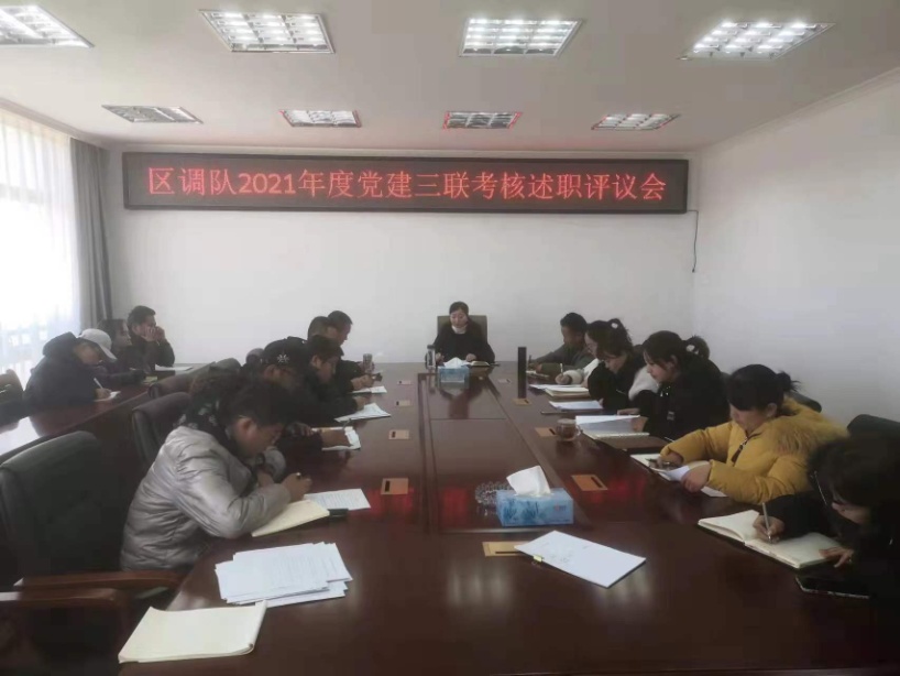 为加强基层党组织党建工作水平,压实全面从严治党主体责任,12月23日下午,区调队党委召开2021年度党建“三联”考核述职评议和各部门落实党建和党风廉政建设及意识形态责任制述职会。会议由队党委书记李莉伟主持,队纪委书记次仁占堆,副队长赵守仁和各党支部书记、各部门负责人、党员代表、职工代表参加会议。
