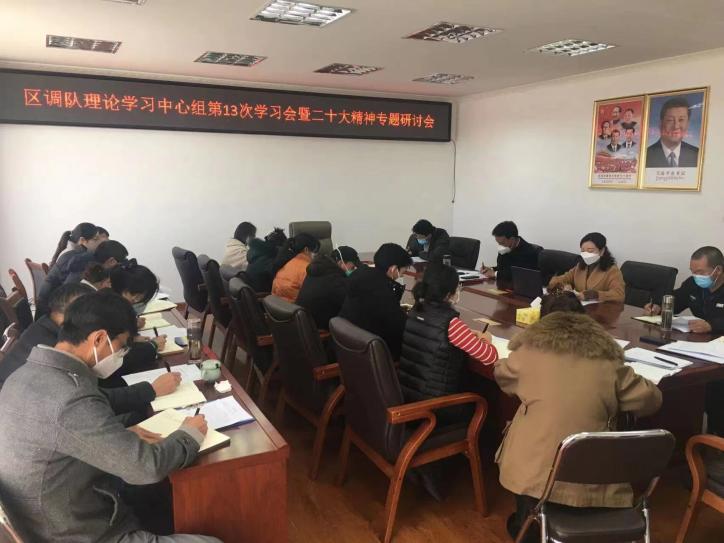 专题学习,掀起学习宣传贯彻党的二十大精神热潮。坚持领导干部领学、支部书记讲学、全体党员研学、利用新媒体助学,在个人做好自学的基础上,注重采取集体学习研讨方式学习宣传党的二十大精神。15日下午,区调队党委召开第13次理论中心学习会,集中学习了党的二十大相关文件精神和近期中央、自治区重要会议及主要领导重要讲话精神,会上,队党委书记对学习宣传贯彻党的二十大精神做了再强调和再布置,大家要持续在学习上、宣传上、落实上再下功夫,切实把学习二十大精神转化为推动区调事业发展的不竭动力。
