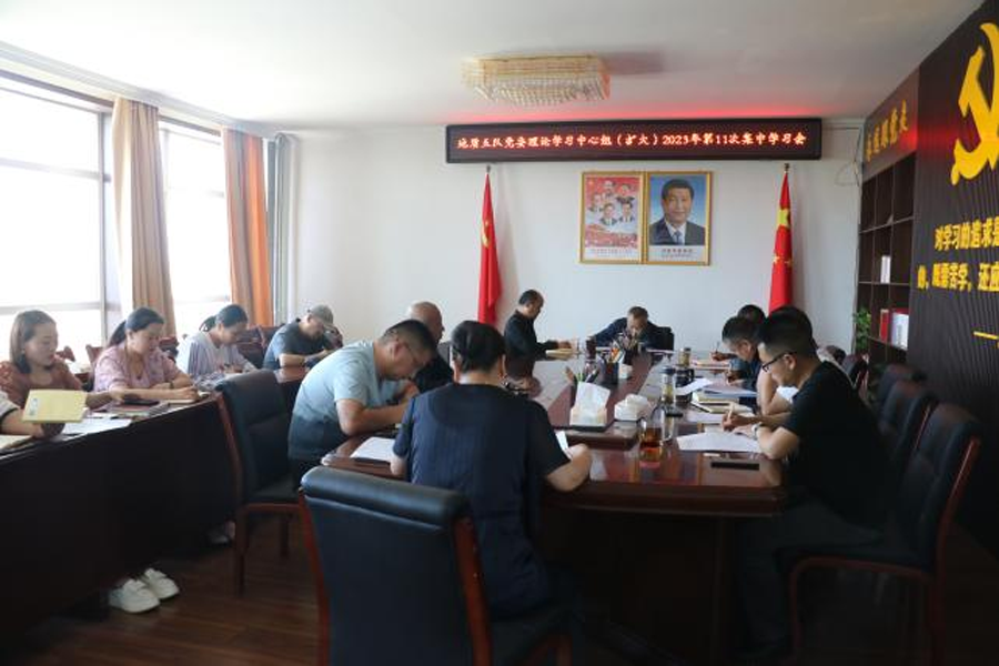 近日,地质五队召开党委理论学习中心组(扩大)2023年第11次集中学习会。大队党委书记、副队长李玉昌主持会议,在队党委班子成员、各支部支委、中层干部、党办、纪检办职工参加会议。