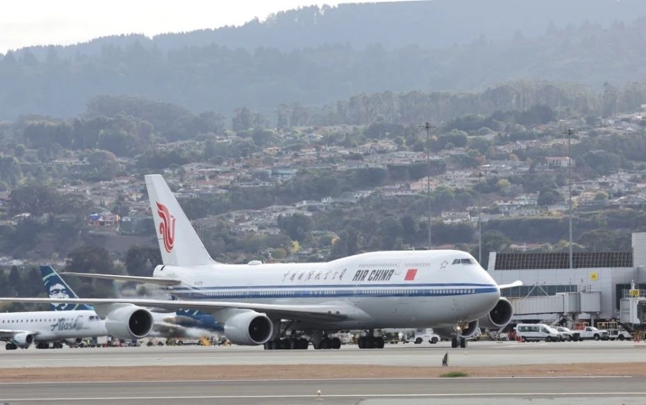 习近平乘坐专机抵达旧金山国际机场时,受到美国加利福尼亚州州长纽森、财政部长耶伦等美方代表热情迎接。