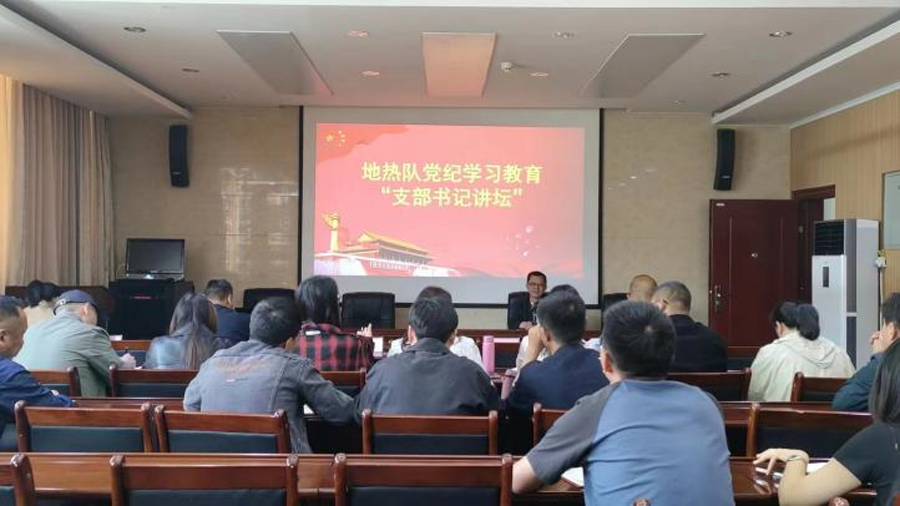 为做好党纪学习教育阶段性总结,加强对大队各党支部的全方位、全过程指导,加强对全队干部党员党纪学习教育的指导督促,持续推动党纪学习教育走深走实,近日,地热队党委组织开展“支部书记讲坛”活动,由大队党委书记、副队长郭建慈主持,在队班子成员、党员和职工代表参加。