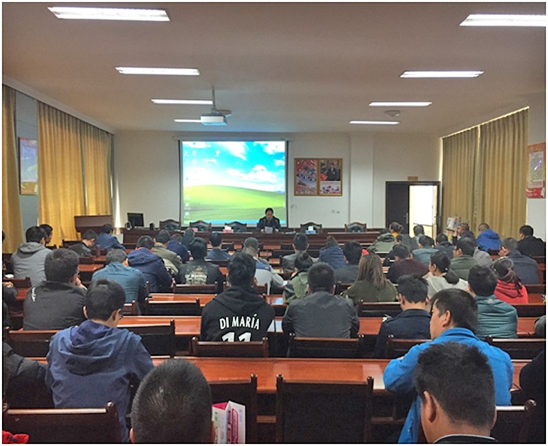 观影前,大队党委书记、副队长靳洪亮向与会同志详细介绍了“3.28”西藏百万农奴解放纪念日的由来,描述了旧西藏人民在“三大领主”剥削压榨下的黑暗生活,讲述了59年前的今天实行民主改革,在党中央、国务院的亲切关怀和全国人民的大力支援下,西藏从黑暗走向光明、从落后走向进步、从贫穷走向富裕、从专制走向民主、从封闭走向开放,社会主义新西藏的经济建设、政治建设、文化建设、社会建设不断取得新的伟大进步,各个领域发生了翻天覆地的变化。靳洪亮书记以自己的视角,向与会同志描述了参加工作40多年来西藏翻天覆地的变化,告诫大家要感党恩,铭记历史,珍惜今天幸福生活。他再次强调三月期间维稳值班事宜,要求严格维稳值班带班无事报平安制度,确保地质五队大中小事均不出。随后,靳洪亮书记同与会同志一同观影。
