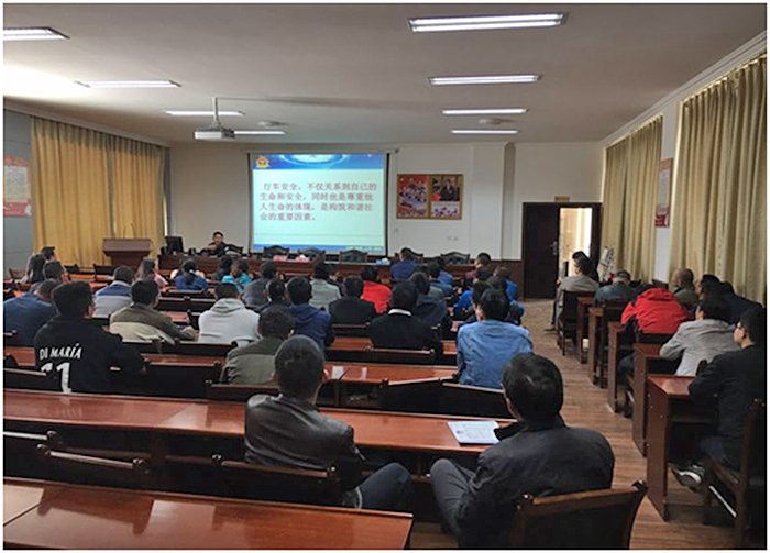 2018年4月26日,为进一步提高干部职工的交通安全意识,保障行车安全,减少和预防道路交通事故,地质五队特邀西藏驻格尔木交警支队的两位警官到单位开展以“安全带•生命带”为主题的交通安全知识讲座,全体在队职工参加。