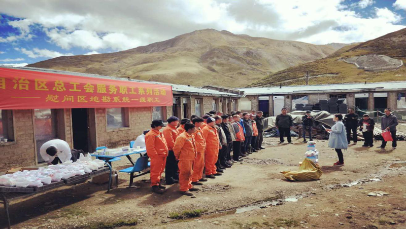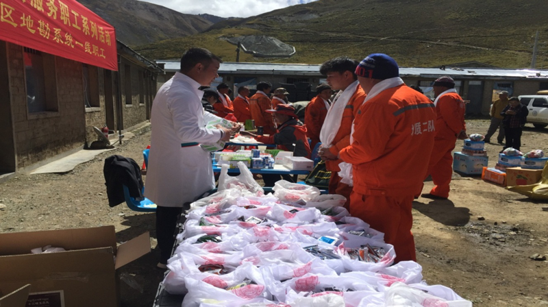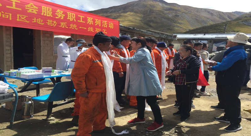 自治区总工会特邀的区藏医院专家不顾长途劳累和高寒缺氧等困难,慰问现场为项目组一线职工进行了身体检查,送医送药。自治区总法律保障部针对地勘系统野外项目点高寒缺氧的特殊情况,专门带去了各类常备藏药和西药。