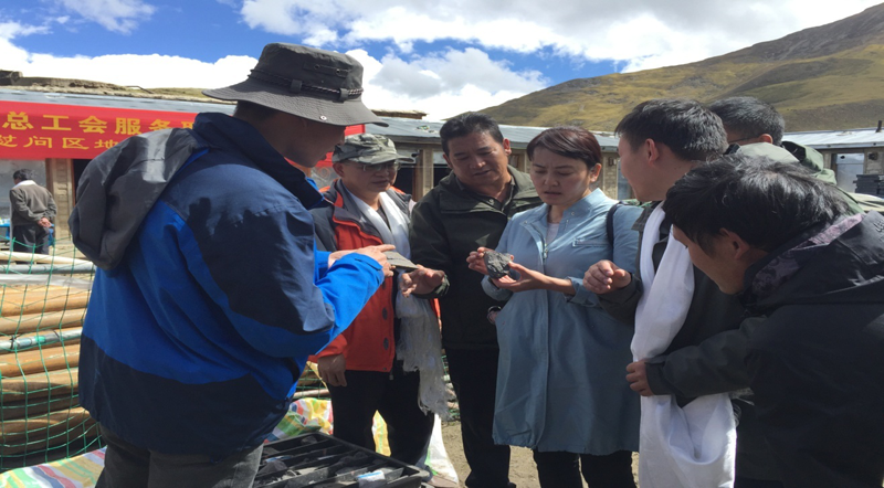 2018年国庆前夕,自治区总工会党组成员副主席丹拥拉姆一行前往区地勘局第二地质大队香卡山铬铁矿深部调查项目点,开展自治区总工会服务职工系列活动之慰问区地勘系统一线职工活动,旨在落实自治区总工会“学习贯彻党的十九大·工会服务在基层”情系职工,真诚服务“五送”活动内容。区总法律保障部斯朗青措部长、赵婷婷,区地勘局西藏地质工会单增平措、巴桑格吉,区地勘局地质二队副队长朱德明、工勘院院长刘海及大队工会侯晓倩陪同参加上述活动。