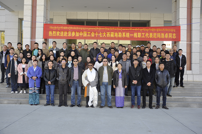 2018年10月19日上午,区地勘局党委书记、副局长巴桑,副局长郭兴华一行专程前往地热队为赴京参加中国工会十七次全国代表大会的尼玛洛卓同志送行,局西藏地质工会、地热队有关负责人及地热队广大职工参加欢送会。
