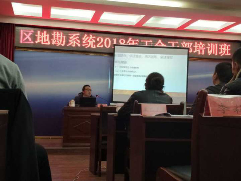 本次培训班邀请了自治区总工会组织部、政策研究室、法律保障部及西藏天泰会计师事务所等部门的专家老师进行授课。两天的培训全面讲解新时期基层工会组织建设、困难群体生活帮扶、大病救助、金秋助学、法律援助等业务知识及工会经费收支使用管理及经费审计监督管理相关内容。自治区总工会副巡视员、组织部部长边巴次仁从加强工会组织建设,提高工会组织凝聚力和影响方面进行了政策讲解,全面细致的阐述新时期基层工会组织建设及中央和区党委党的群团工作会议精神等内容,结合地勘系统实际,深入浅出的讲解基层工会组织争“三性”去“四化”等方面的工作要求,要求地勘系统广大工会干部要积极发挥“工会组织在治边稳藏中发挥政治性先进性群众性作用,职工队伍在做神圣国土守护者,幸福家园建设者伟大实践中的主力军作用”