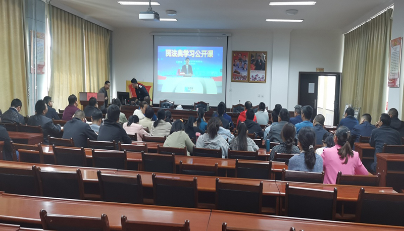9月23日下午,地质五队组织在队全体职工集中观看学习《民法典公开课》。学习会由队党委书记、队长达瓦穷达主持,在队职工近六十余人参加学习。