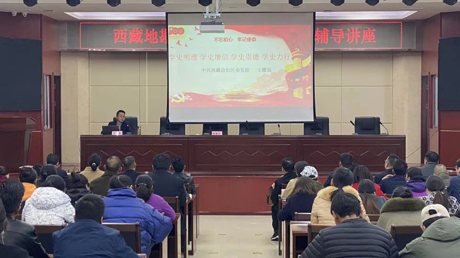 为深入贯彻落实中央、区党委关于开展党史学习教育的决策部署,扎实推动地勘系统党史学习教育入脑入心、走深走实,4月23日上午,区地勘局组织召开党史学习教育专题辅导讲座,邀请自治区讲师团成员、区党委党史党建教研部王耀强讲师作专题辅导。局党组副书记、副局长杨安文主持、局党组书记、副局长巴桑和局党组班子成员参加讲座学习,局机关和各局属单位领导、党员干部、职工代表共计100余人参加。