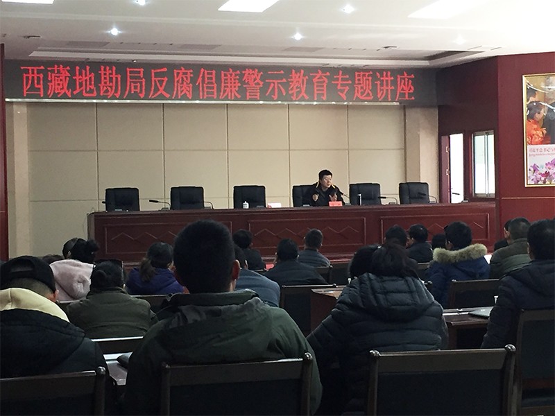 为不折不扣贯彻落实区党委“机动式”巡视反馈问题整改意见,实现条条必整改、件件有着落、事事有回音的目标任务,地勘局党委坚持问题导向,深挖管党治党主体责任落实思想症结根源,将进一步加强党员干部职工思想教育和理论武装作为巡视整改工作的落脚点与着眼点,为强化党委主体责任落实提供坚强思想保证。1月26日,区地勘局特邀中央纪委第八批援藏干部,自治区纪委案件审理室主任张新同志、区直工委调研员李祥彬同志就新时期如何进一步加强党风廉政建设和机关党建工作,为地勘系统120余名党政领导干部和基层党组织委员举办了一期专题讲座。