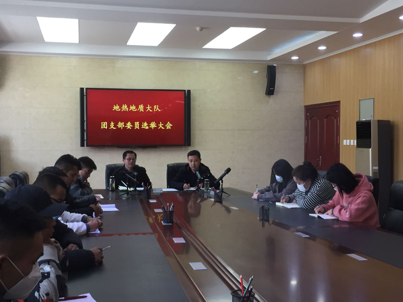 2020年4月15日下午,地热队党委书记郭建慈主持召开团支部委员选举大会,队党委成员、副队长樊磊磊和团青干部及政工人员参加了会议。