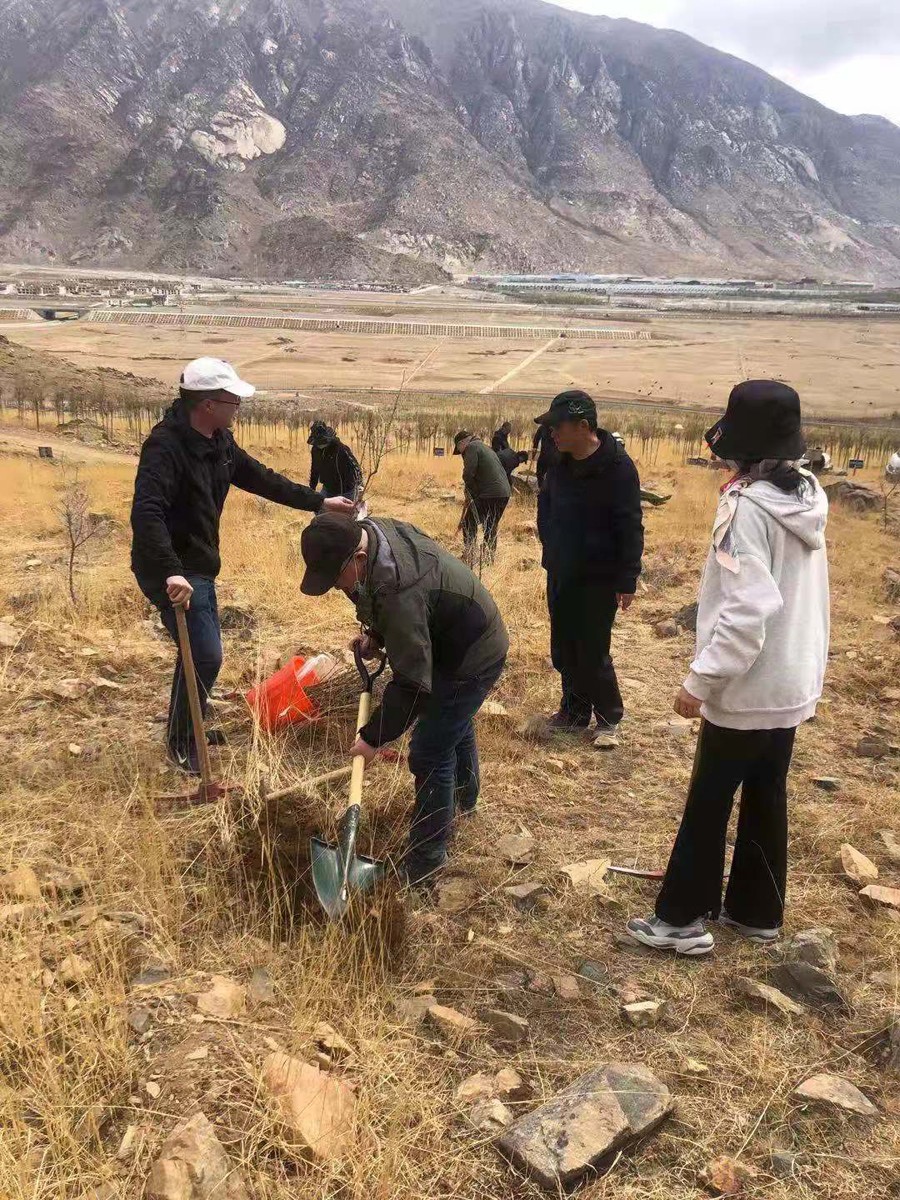 4月22日,地勘局组织团员青年乘车前往堆龙德庆郊区参加义务植树活动。空旷的山脚下,阵阵袭来的凉风挡不住年轻人心中如火的热情,大家积极投入到植树活动中,纷纷拿起铁锹、挖坑植苗、铲土入坑、培实新土、灌溉浇水,活动现场一派热火朝天的劳动景象。经过大半天的辛勤努力,连片的树木整齐有致、