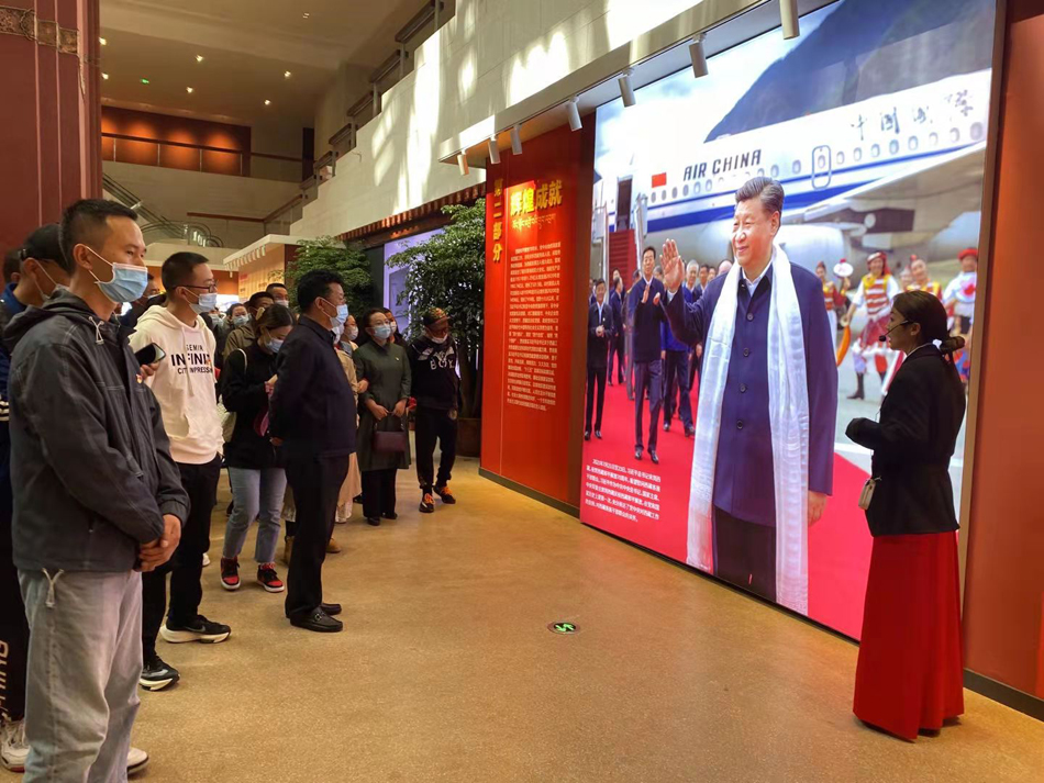岁月无声,悄然记录下西藏70年来的沧桑巨变;时间奔流,见证着西藏360多万各族儿女的奋斗足迹。置身于这色彩斑斓的绚丽画卷,走在展区的“时光隧道”中,大家无不为西藏的伟大发展历程所动容,无不感慨中国共产党的英明伟大。