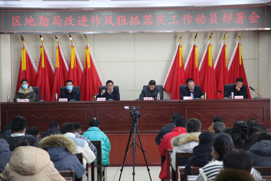 会上,局党组成员、副局长谢渊同志传达了全区改进作风狠抓落实工作动员部署会议精神;局党组成员、副局长张焕彬同志宣读了《关于成立区地勘局改进作风狠抓落实工作领导小组的通知》;局党组副书记、局长杨安文同志代表局党组作动员讲话。