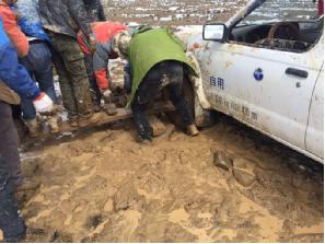 区调队某项目组陷车,大家团结一心战胜困难并顺利脱险