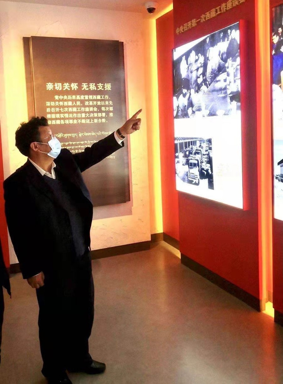 从农奴卖身的文契到和平解放西藏的协议,再到民主改革时丈量土地的皮尺等,巴桑书记带领大家在众多文物前流连驻足。当看到农奴制度的黑暗残酷时,大家纷纷皱眉,心情十分沉重,看到民主改革和西藏的建设成就时,大家展露笑颜,很是高兴振奋。真的是没有共产党就没有新西藏。