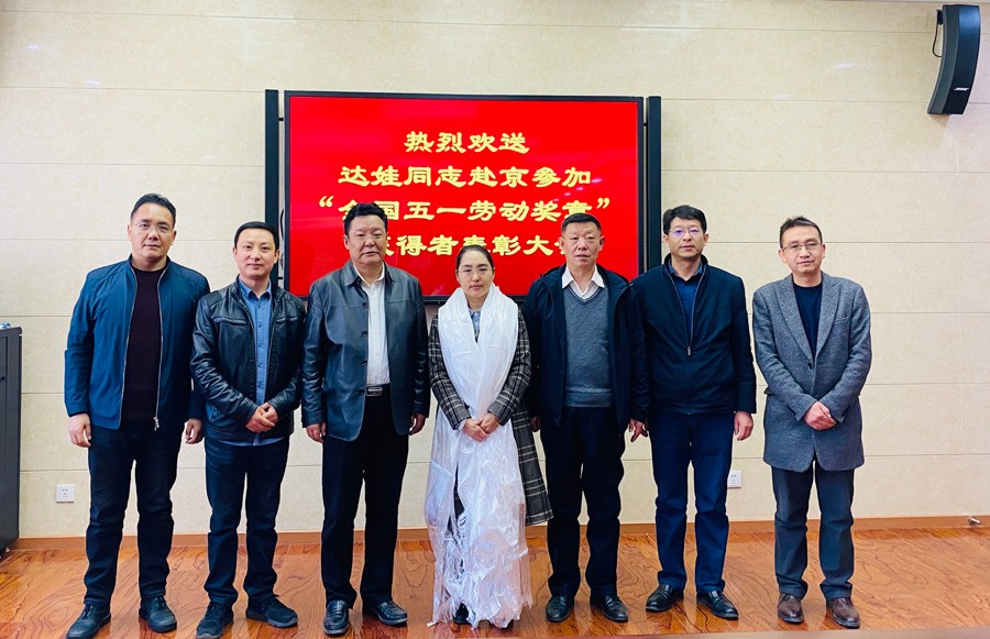 2021年4月23日上午,地热队召开会议热烈欢送“全国五一劳动奖章”获得者达娃同志赴京领奖,局党组书记、副局长巴桑,局党组成员、副局长杜光伟,局地质工会副主席单增平措一行莅临地热队为达娃同志送行,地热队党委班子成员及副科级以上干部参加会议。
