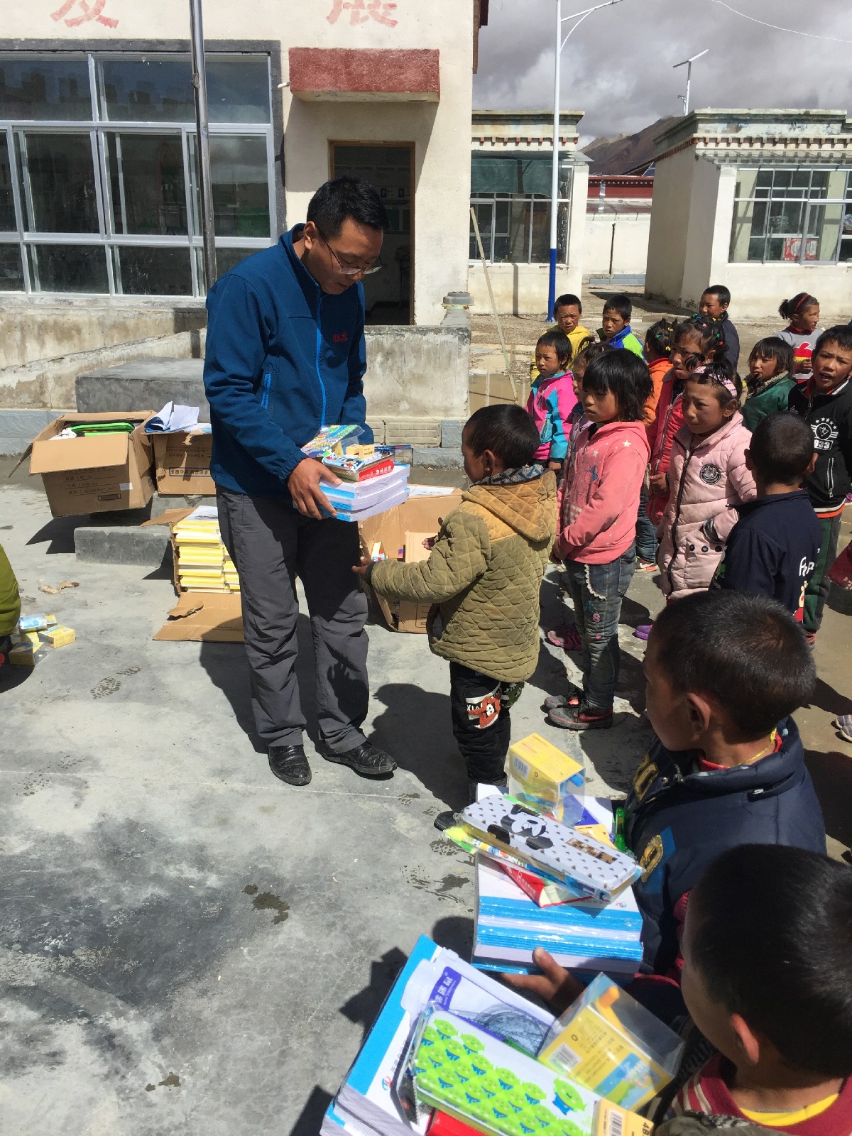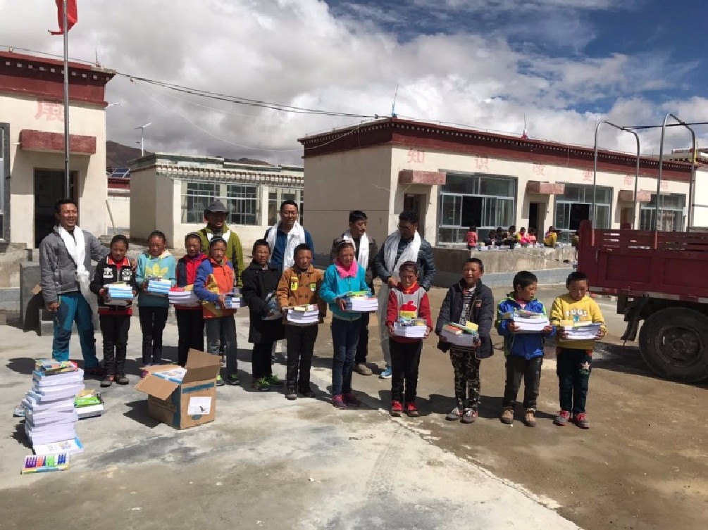 在达若乡党委书记带领下,志愿者们为达若乡小学61名学生捐赠了价值7000余元的书包、笔、作业本、字典、乒乓球、鸡毛毽子等学习用具和体育活动用品;带领孩子们一起唱儿歌、学识字,一起做“老鹰抓小鸡”、“抢足球”等小游戏。