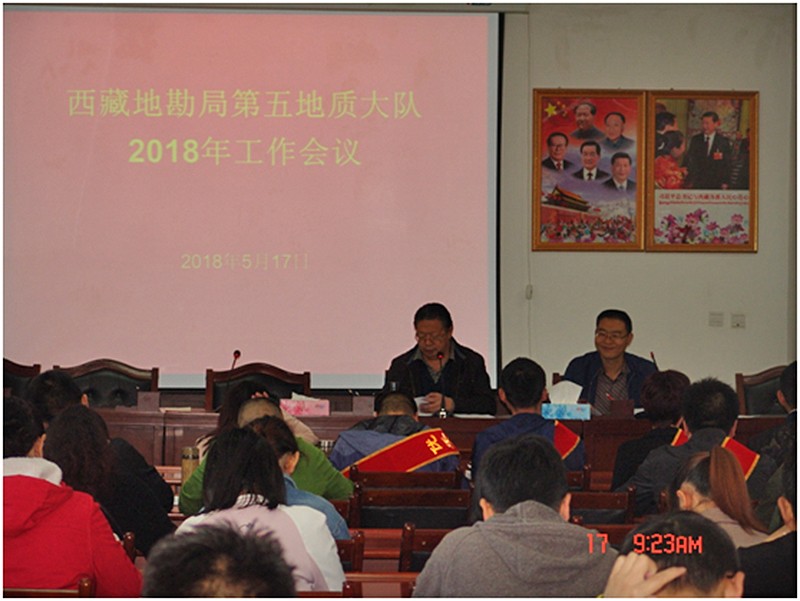 2018年5月17日上午,地质五队召开2018年工作会议,传达学习局2018年工作会议精神,回顾总结2017年工作,安排部署2018年重点工作。会议由队党委书记靳洪亮主持,在队全体职工参会。