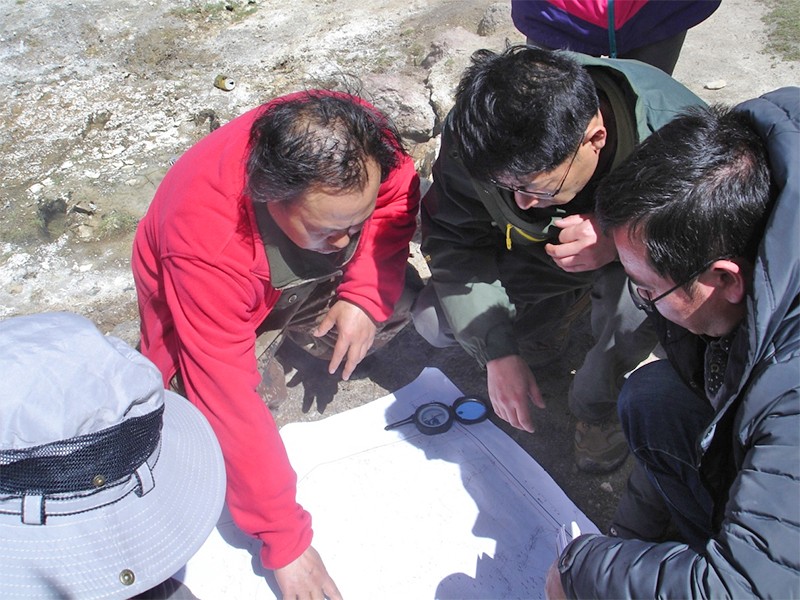 检查组先后对“日喀则市地热资源调查与评价项目” “西藏乃东-扎囊-贡嘎-江孜-白朗-墨脱-察隅县优选耕地区1:5万土地质量调查项目”进行检查指导。抽样检查了泉点取样情况,重点查看了项目组各项工作记录(野外地质记录本、自检表、互检表、工作小结、剖面计算表等),详细了解了项目进展情况,并着力解决项目遇到的疑难问题。