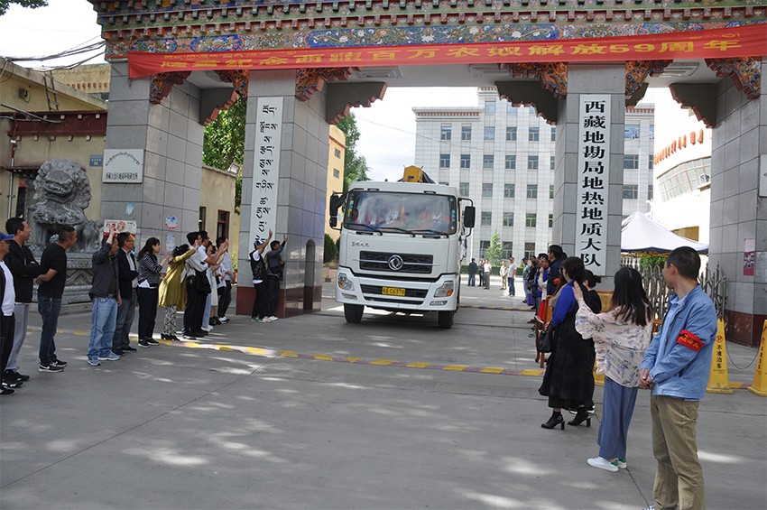 2018年7月6日上午,地热队水勘处钻探施工队伍一行12人在全队干部职工的热烈欢送下,正式奔赴野外一线开展工作,这标志着由地热队承担的“西藏山南市地热资源调查评价项目”地热钻探施工正式开启。