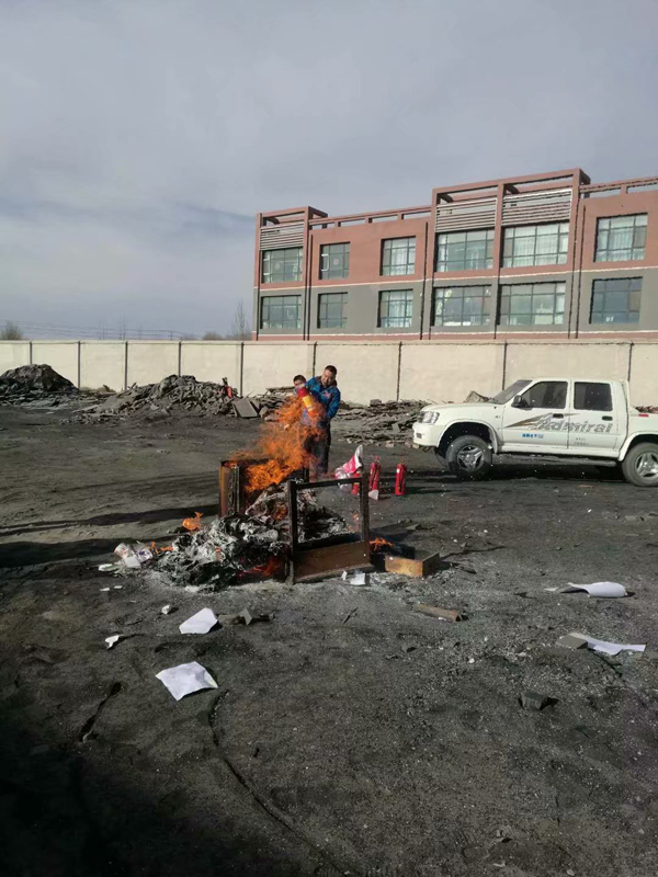 演练现场,队安保科科长刘传勇首先为全体员工进行了消防安全应急操作与火场逃生技巧讲解,教大家掌握一旦发生火情,每个人应该做什么,如何正确地报警、扑救、疏散,如何自救和逃生。刘科长现场还对干粉灭火器的结构进行讲解,使用方法进行指导,让职工使用干粉灭火器对现场小型模拟火点进行灭火,亲身感受在火场应该如何使用正确消防设备。