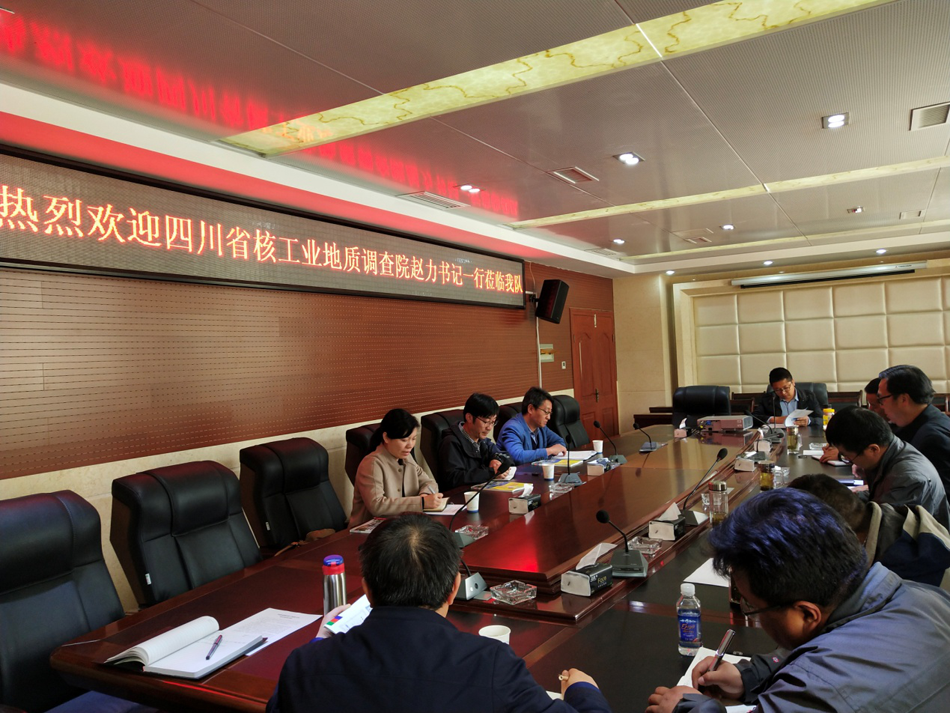 2019年4月29日,四川省核工业地质调查院党委书记赵力、工程技术研究中心主任钟红梅一行到地质六队开展业务交流。地质六在家领导及有关科室负责人参加交流座谈。会上,四川核工业地调院与地质六队领导分别就各自单位基本情况、机构设置、人员配备、项目运行情况、发展方向以及存在的问题等方面进行了座谈交流。双方在交流互动中深化认识、凝聚共识。