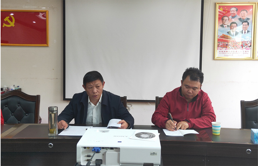 会上,春兰副处长宣读了局党委任免职决定:强巴曲宗同志任地调院党总支书记、副院长,尼玛次仁副院长兼任地调院总工。她随后介绍了两位同志的相关工作经历情况。