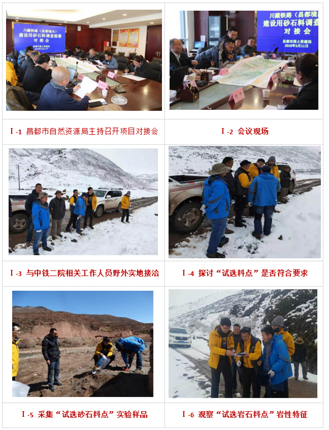 为配合西藏昌都市全面做好川藏铁路(昌都境内)建设砂石料保障工作,地质六队党委主动作为,本着“积极履行社会责任,服务川藏铁路工程建设”为宗旨,决定成立项目组无偿完成昌都市境内的铁路沿线碎石集料、道砟底砟用料开采选区调查工作。2019年2月28日至5月4日,历时近三个月全面完成了川藏铁路(昌都境内)全段砂石料野外调查任务,累计调查里程17377公里(涉及1:5万图幅33幅),共选出98处岩石(砂石)料点,其中岩石料点63处,砂石料点35处。