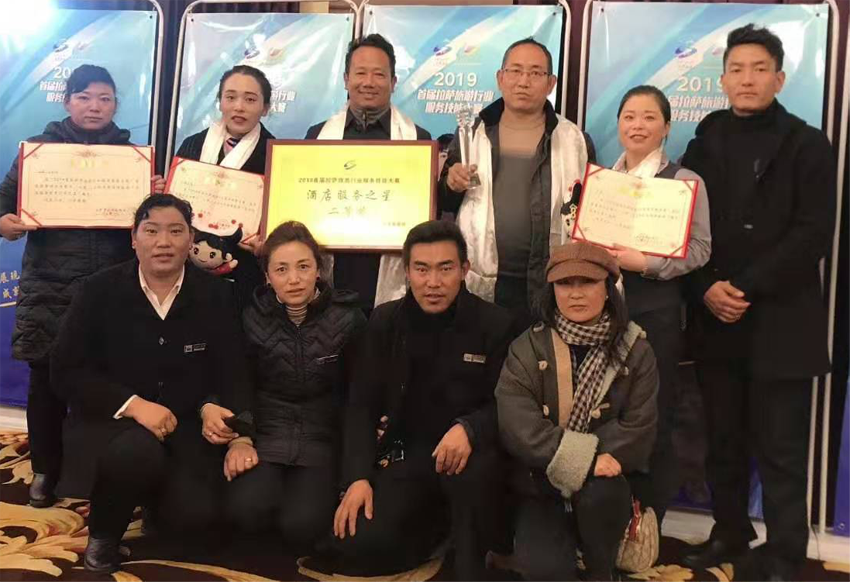 在2019年首届拉萨旅游行业服务技能大赛中,西藏山水宾馆荣获“酒店最佳人气奖”“酒店服务之星二等奖”“餐厅服务之星二等奖”“客房服务之星二等奖”四个奖项。参赛个人选手也取得可喜成绩:客房中式铺床预赛中仁增卓嘎以第一名的佳绩进入决赛,决赛中以第四名的成绩获得“客房服务之星”;山水东坡酒楼领班卢荟在中式摆台决赛中以第二名的出色成绩获得“餐厅服务之星”。