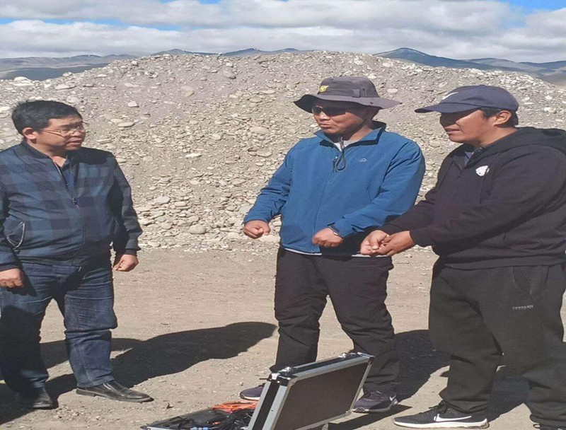 在项目现场,毛国正总工程师向顿珠副县长详细介绍了项目具体情况,表示在区地勘局党组的关心支持和集团党总支的重视下,项目踏勘、立项、电法找水仪器购买、进场实施等各个阶段工作开展都十分顺利。项目负责人巴旦就项目进展情况和下一步工作安排做了汇报。顿珠副县长对区地勘局党组、西勘集团党总支及项目组给予康马县的支持表示感谢,肯定了项目组的阶段性工作成果,并希望项目组在保障人员安全的前提下高效率高质量完成该项目。