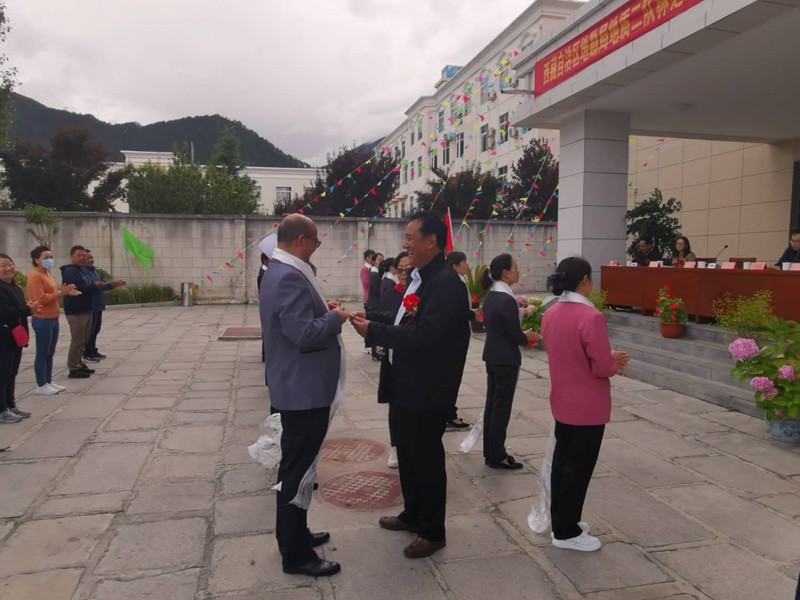 仪式最后,张智君副部长和边巴次仁巡视员向林芝山水委员会会员献哈达并赠送慰问金。