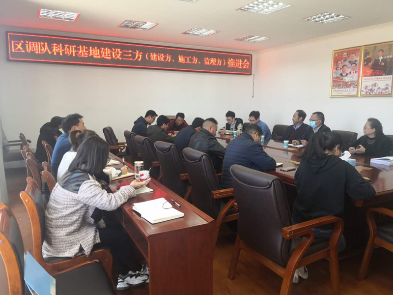 近日,区调队召开科研基地建设三方(建设方、施工方、监理方)推进会。会议由队党委副书记、队长扎西主持,队纪检书记次仁占堆、总工程师强巴扎西及基建领导小组成员参加会议。
