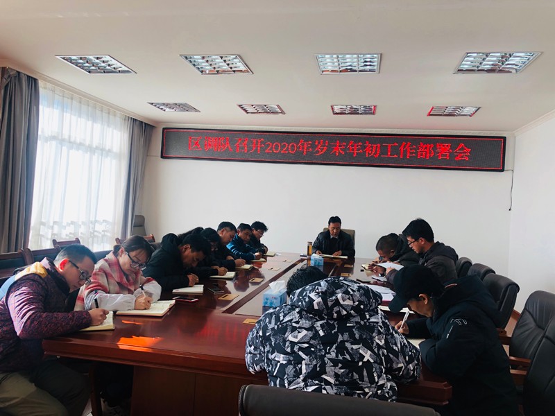 12月9日,区调队召开岁末年初工作部署会,传达学习“区地勘局2020年岁末年初工作安排部署会议”精神及巴桑书记重要讲话精神。会议由队党委副书记、队长扎西主持。