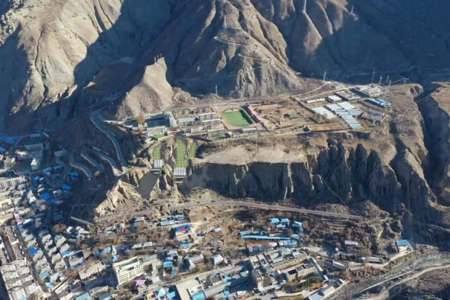 朗县中学不稳定斜坡全貌