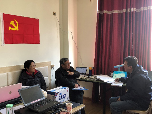2021年4月4日,区自然资源厅副厅长刘鸿飞一行亲临《中国矿产地质志·西藏卷》林芝集中编写组,检查慰问项目研编人员。