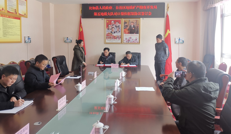 为使“五型地勘”和“服务民生”工作更加扎实有效开展,充分落实与那曲市自然资源局签订的《战略合作协议》,有效提高比如县生态文明、防灾减灾保障水平,增强比如县自然资源、文化旅游、基础建设等产业开发能力,经友好协商,地质五队与比如县人民政府于5月19日在比如县召开签订会,比如县副县长尼玛次仁及县自然资源局等相关部门负责人参加会议,双方签订《西藏那曲市比如县人民政府与西藏地质五队对口帮扶框架协议》。