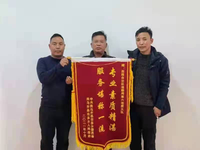 一份付出,一份收获,一面锦旗,一声感谢,是对西藏地质科技工作者的肯定,同时也是一种鞭策。今后地质六队将进一步勇于肩负起社会责任,深入开展“我为群众办实事”,用实际行动为社会做出回报,在工作中始终坚持“人民至上、生命至上”理念,为人民的生命财产安全保驾护航,为建设社会主义新西藏贡献力量。