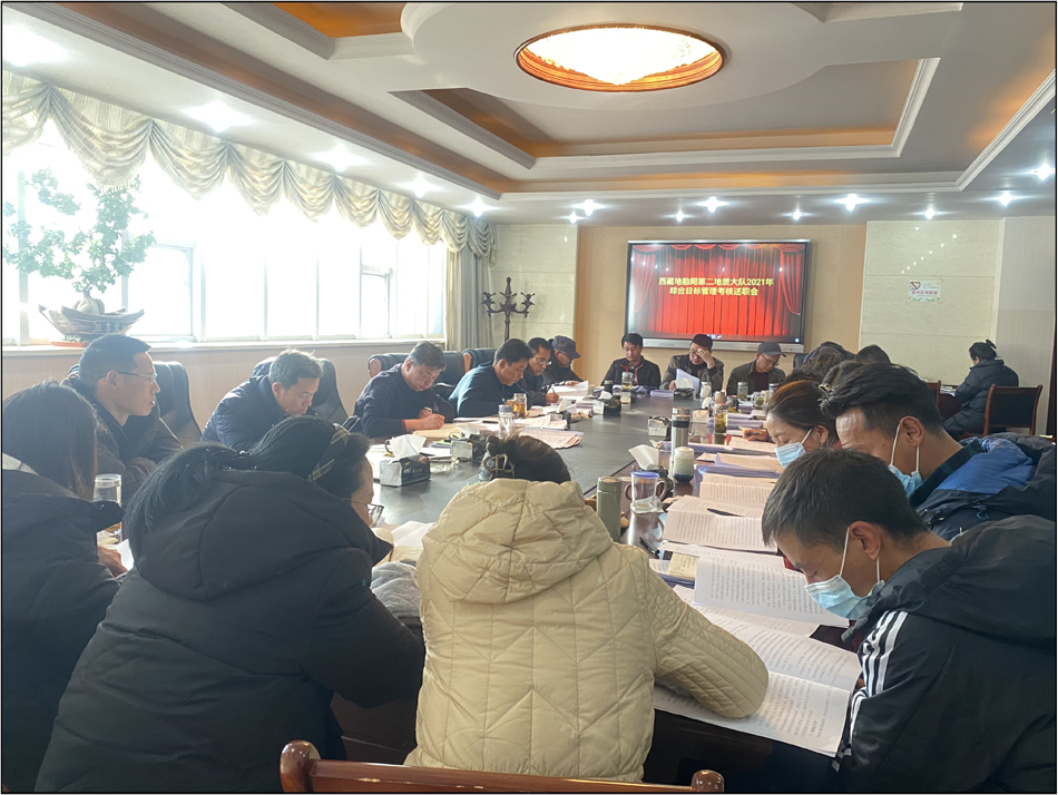 2022年1月6日,地质二队召开2021年度综合目标管理考核述职会议。会议由队长曹林主持,在队领导班子成员及队属各部门负责人参加会议。