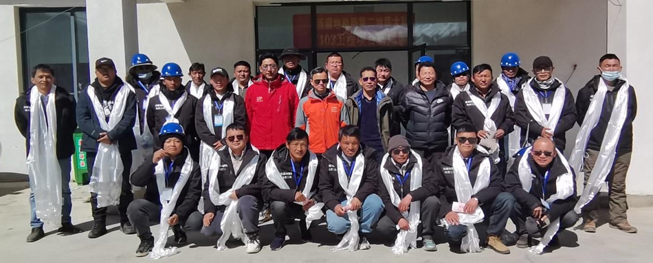 2022年2月22日,在重点项目达东片区各项工作进入关键期之际,地质二队工会赴项目点开展慰问活动,队级领导次旺欧珠、罗杰、次琼、胡孝洪在现场为全体技术人员献哈达,发放慰问金。