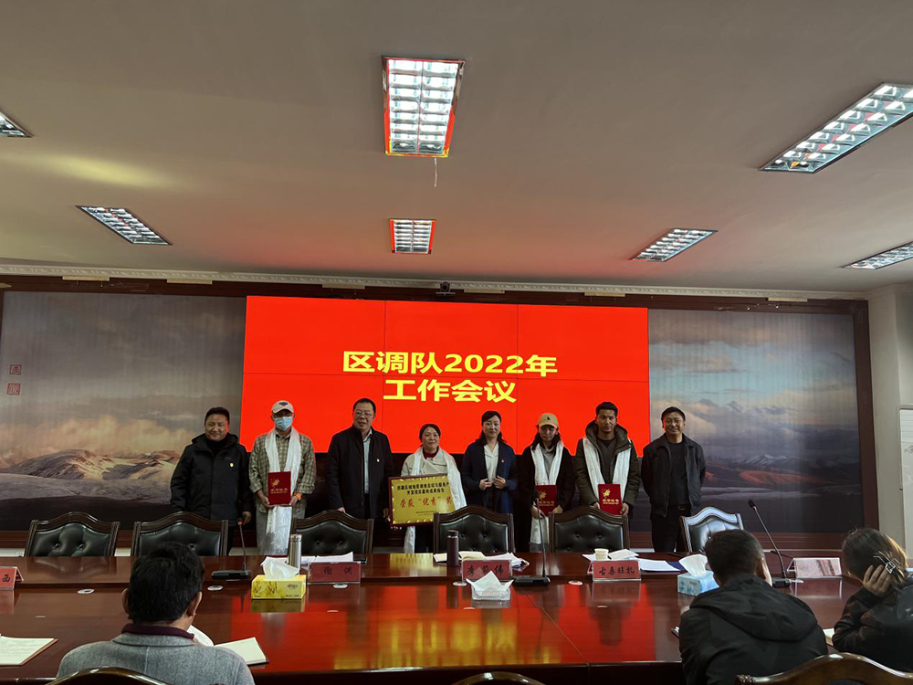 扎西队长作了区调队2022年产业经济工作报告。他结合局党组2022年工作精神,全面客观地总结了区调队2021年产业经济工作所取得的成绩、分析了存在的问题、明确提出了2022年产业经济工作的指导思想、奋斗目标和具体措施。会上,还对2021年度优秀地勘项目、年度考核优秀个人进行了表彰。