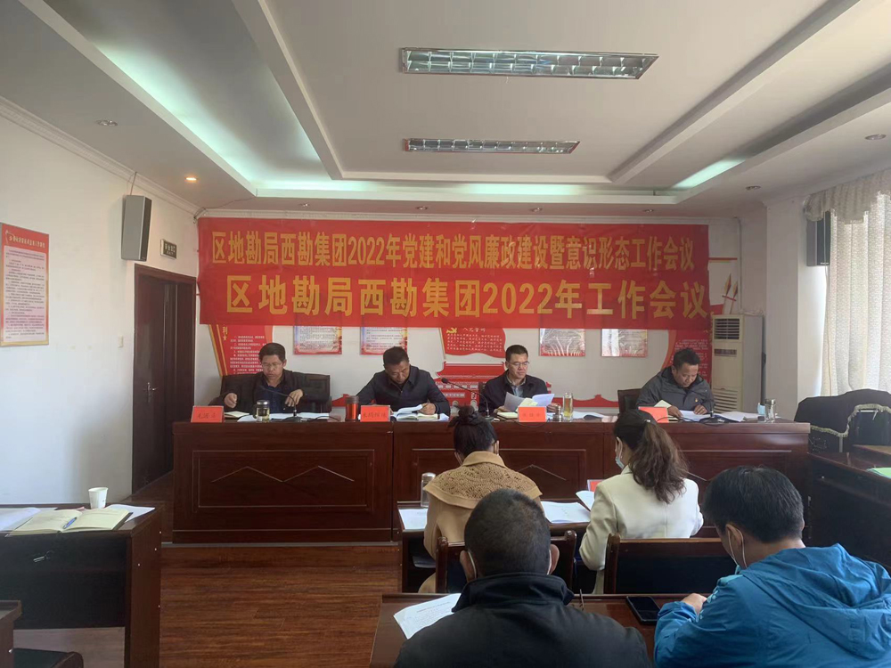 2022年4月15日上午,根据精简会议要求和防控疫情工作需要,西勘集团组织召开2022年党建和党风廉政建设暨意识形态工作会议、2022年工作会议。会议分别由公司总工程师、纪委书记毛国正、副总经理普布占堆主持,领导班子及在家干部职工、山水宾馆员工共计38人参加会议,区地勘局党组成员、副局长张焕彬,局经管处处长次央和政工人事处副处长春兰出席会议。